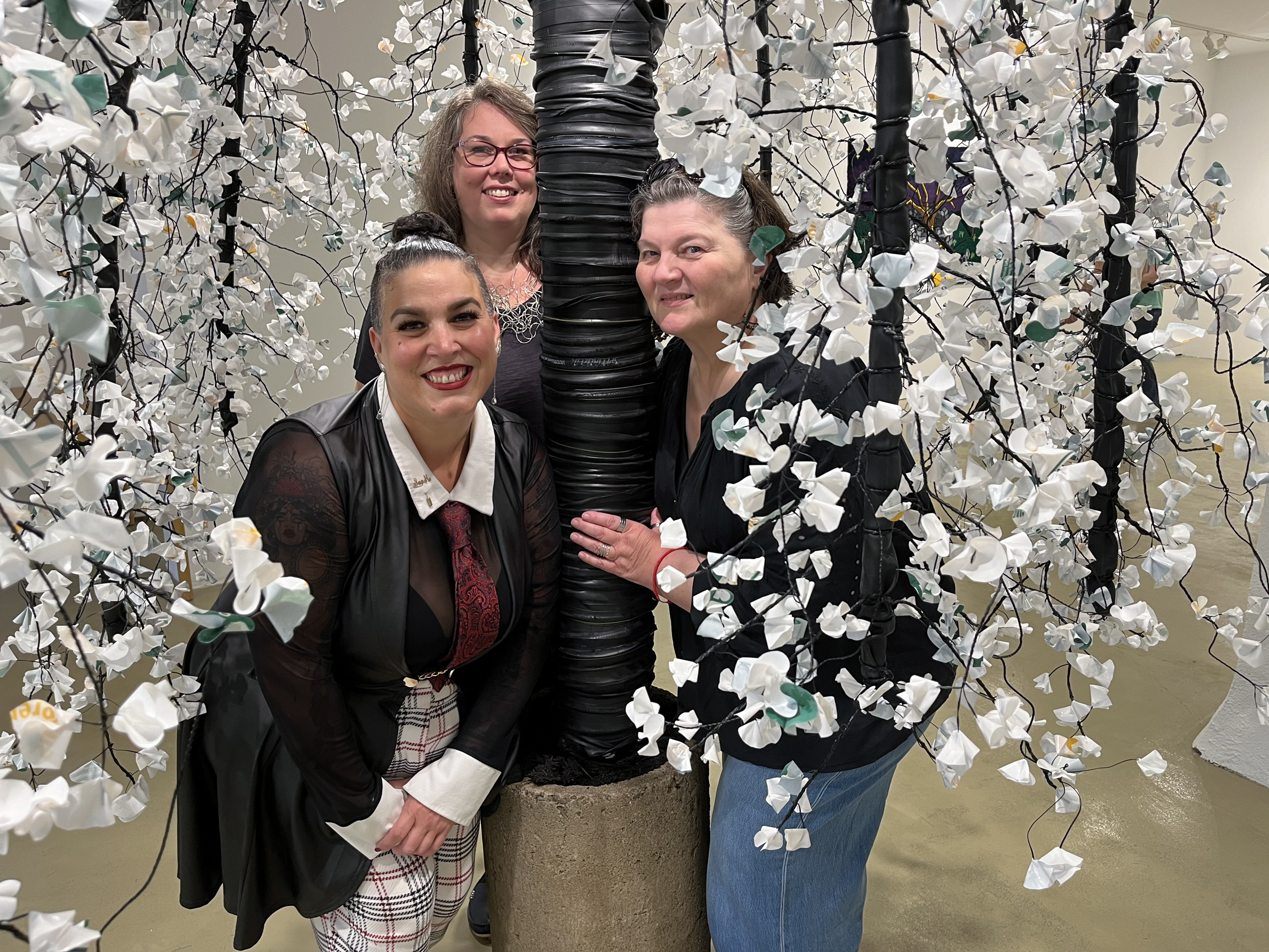 By recontextualizing man-made materials to mimic a natural form, Hixon explores the delicate balance between the human desire for rootedness and the impermanence of time, reflecting the ways in which we, as individuals, navigate our place in a world that is ever-changing. Her work invites viewers to contemplate their relationship with the environment, the cyclical nature of life, and the enduring impact of human creations. Through this installation, she calls for a reconnection to the natural world, underscoring the importance of sustainability and the role of art in fostering community, environmental awareness, and a deeper sense of belonging across generations and cultural narratives.